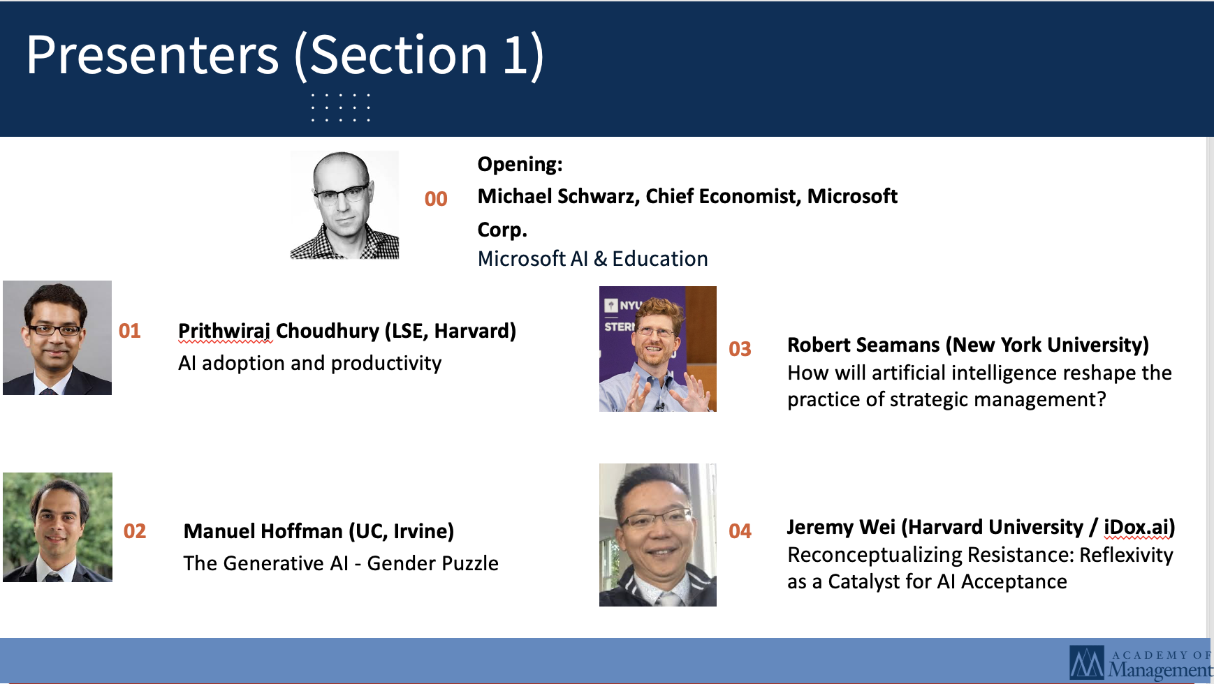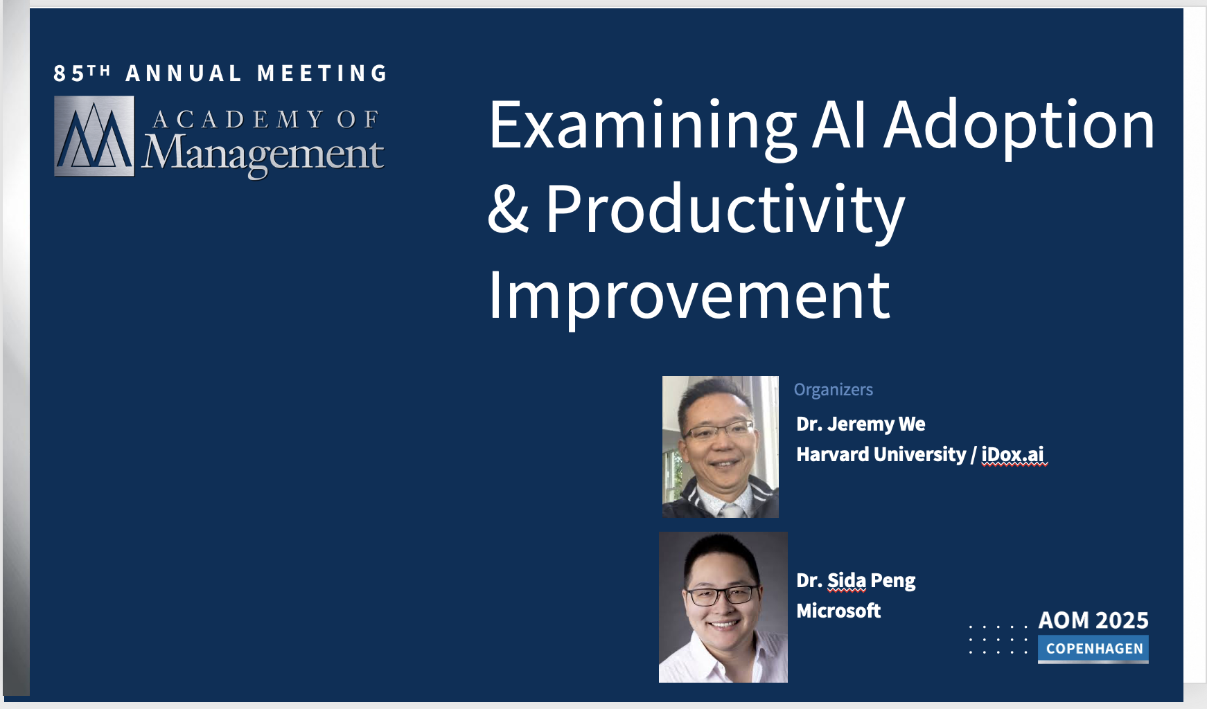We are pleased to invite you to Part 2 of our Professional Development Workshop (PDW): Examining AI Adoption and Productivity Improvement, a timely and high-impact session that brings together leading scholars and industry experts. This session features a keynote address by Michael Schwarz, Chief Economist at Microsoft, and presentations that bridge cutting-edge academic research with practical challenges and innovations in AI deployment.